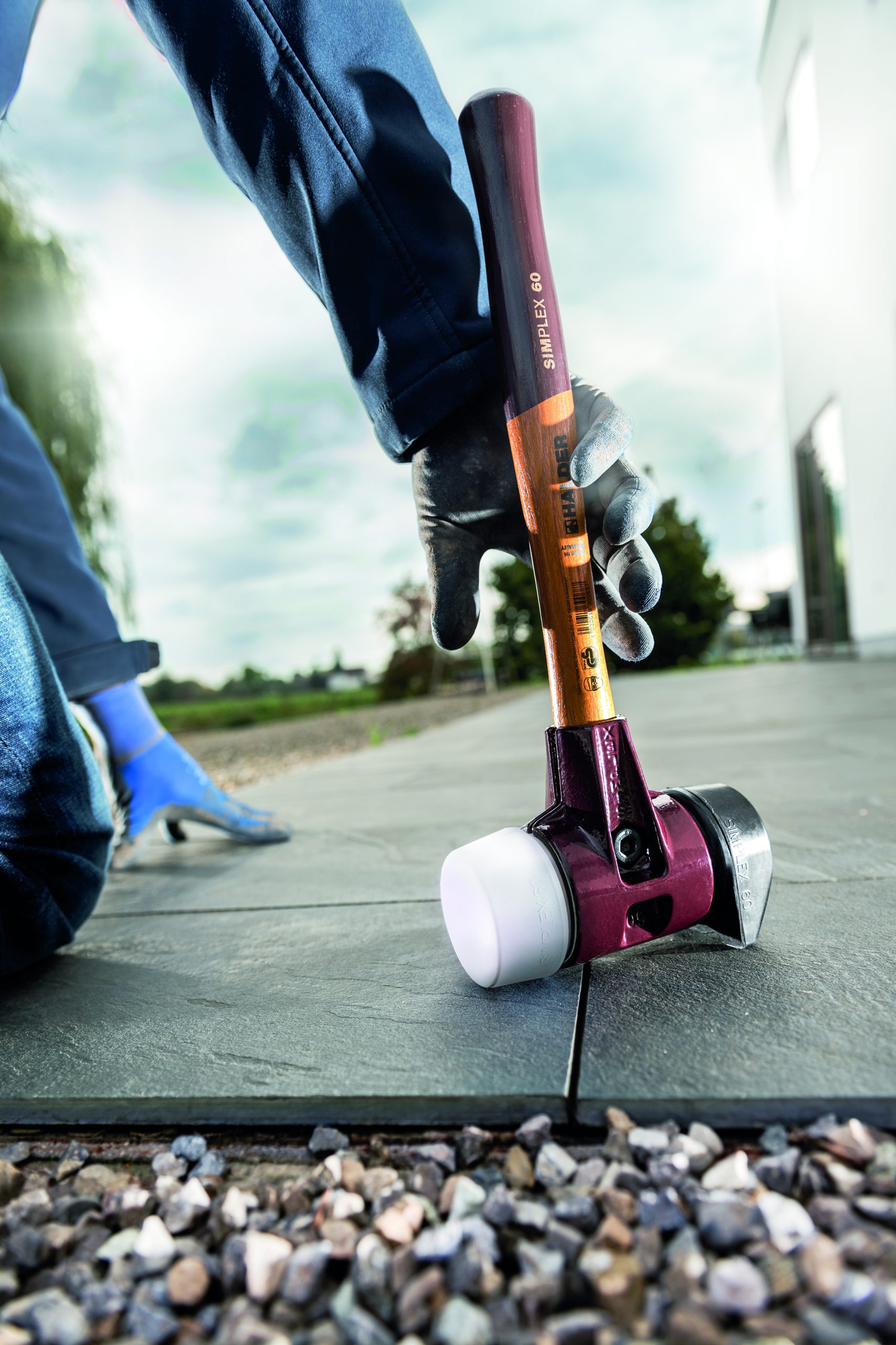 Bilo da se radi o popločavanju SIMPLEX čekićem s mekom površinom ili o postavljanju rubnika, stepenica ili zidova SIMPLEX maljem – kombinacija crno-bijelog umetka – gumene smjese i superplastike – idealno je prikladna za svaki posao na gradilištu. Budući da je nešto tvrđi, bijeli umetak je izuzetno robustan i otporan na habanje. Crni umetak je srednje tvrdoće, pruža ublažavanje udaraca, bez mirisa je i izdržljiv.
